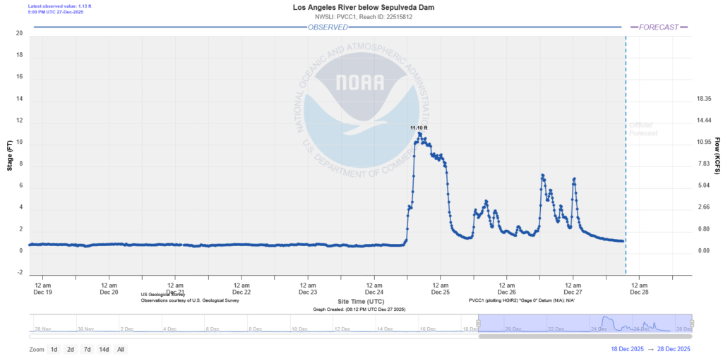 Wasserstand am Los Angeles River (Quelle: National Water Prediction Service)